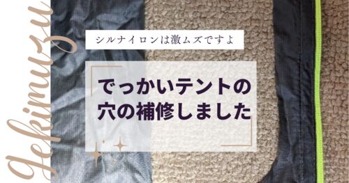 テントの補修依頼を受けました 主なテントの補修方法 1.補修パッチ・リペアシートで補修 2.突き合わせはぎで縫い合わせてシームテープを貼る 3.別布を当てて縫い合わせシームテープ処理 テントの大きな穴の補修開始 さて補修計画 工程1.テント穴の形を整える…