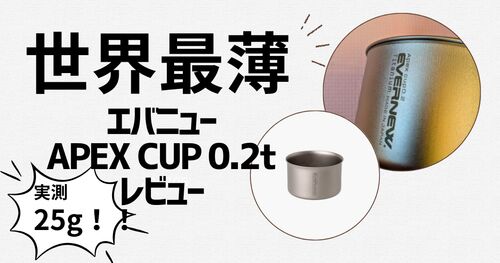発売開始前から話題の「世界最薄」 エバニュー apex cup t0.2 レビュー まとめ 良い点 悪い点 発売開始前から話題の「世界最薄」 エバニューの新作として既に発表されていた表題のエバニュー apex cup t0.2。 市販のチタンカップとしては世界最薄の0.2mmのも…